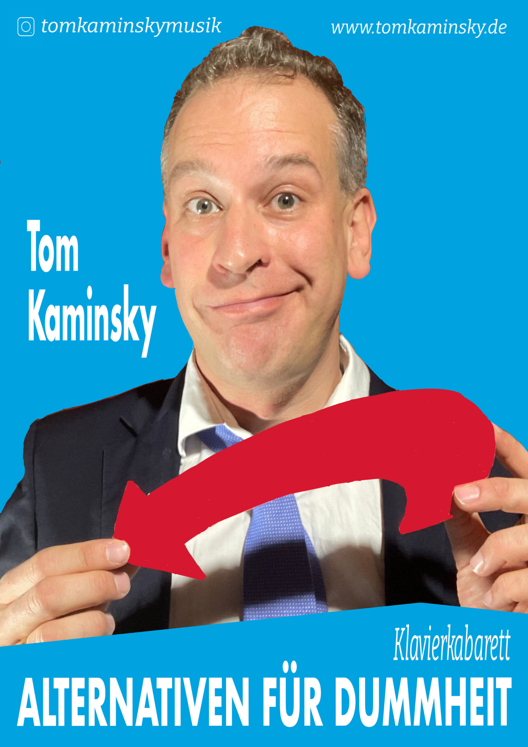 Tom Kaminsky spielt Klavierkabarett zum Thema Rechtsextremismus und Populismus auf Demos und Kleinkunstbühnen. Sein aktuelles Programm Alternativen für Dummheit“ ist ein Therapieabend für linke Spinner. Darin essen Migranten Katzen, tanzen Wutbürger Tango und aus dem postfaktischen akterium entsteht ein galaktisches Imperium. Bei Tom Kaminsky wird der Wahnsinn Programm: Testosterongesteuerte Autokraten retten die Welt vor dem linksgrünversifften Establishment. Musikalisch bohrt Tom mit ihnen nach Öl, ruft die außergewöhnliche Notlage aus und feiert die toxische Männlichkeit. ußerdem hat er Tips für einen perfekten populistischen Wahlkampf in der Tasche. Björn, und Alice fühlen sich von Tom geliebt, bis sie merken, dass er sie eigentlich mit Elons Rakete auf den Mars schießen will. Und es auf Erden endlich wieder Gehirn vom Himmel regnet.
